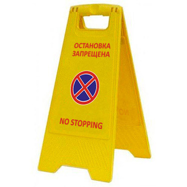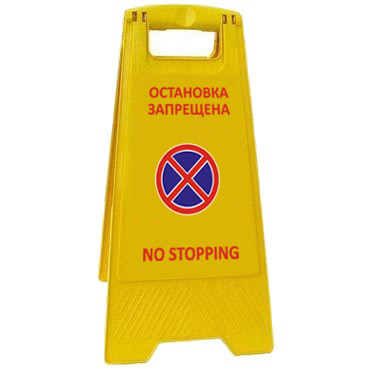 Предупреждающий пластиковый знак "Остановка запрещена" изготовлен из ударопрочного пластика, устойчив, удобен и занимает очень мало места при хранении.