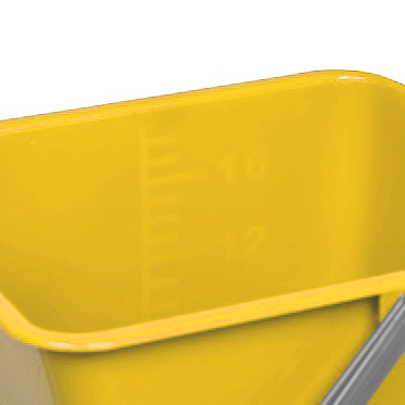 На внутренней стороне ведра нанесена мерная шкала, благодаря которой можно правильно подготовить моющий раствор