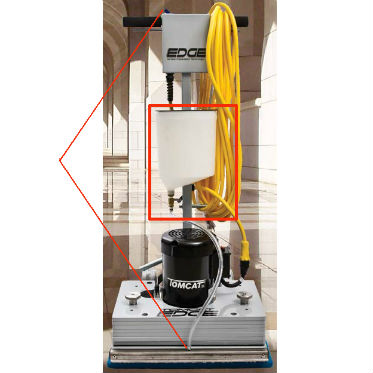 Пластиковый бак предназначен для подачи воды или химических средств на обрабатываемую поверхность и устанавливается на ручке машины. Кроме бака в комплект поставки входят: трубка подачи жидкости, пластина для крепления трубки, кожух-юбка на липучке, механизм подачи жидкости.